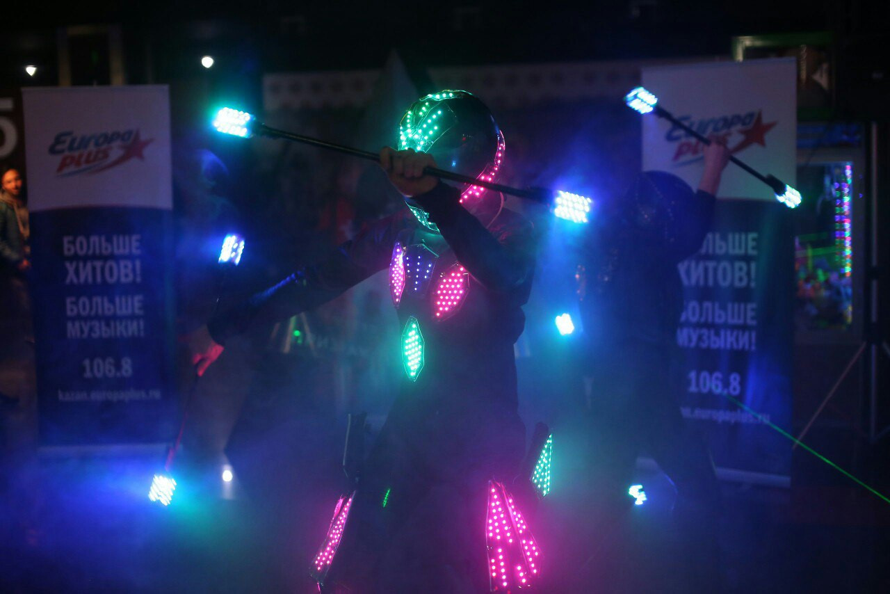 - Световое шоу: Современное, яркое и безопасное. Это как фейерверк, только ближе и интереснее. Подходит для любого праздника, будь то детский день рождения или гламурный банкет. Световые костюмы, пиксельный реквизит и неоновые декорации — ваш праздник станет вирусным даже без TikTok.